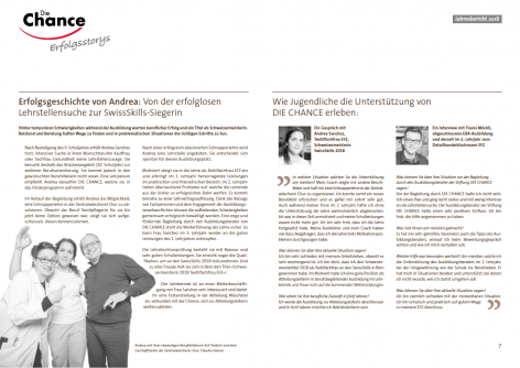Hinter temporären Schwierigkeiten während der Ausbildung warten beruflicher Erfolg und ein Titel als Schweizermeisterin. Beistand und Beratung halfen Wege zu finden und in problematischen Situationen die richtigen Schritte zu tun.
