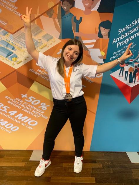 Eleonora Nicolaci gewinnt an den SwissSkills 2022 in Bern die Silbermedaille für ihre hervorragende Leistung in der Berufskategorie Fachleuten Textilpflege EFZ